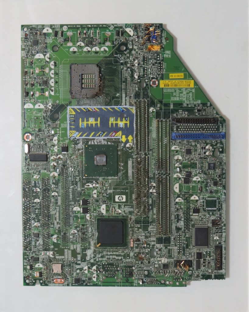 Acrylic and Circuit Board Mounted on Computer Screen.